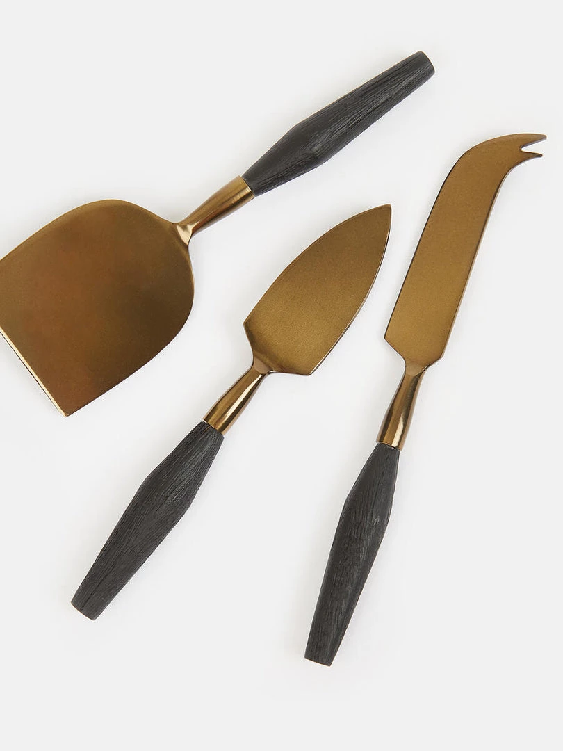 Be Home Black Wood & Antique Bronze Cheese Set Servingware + Utensils