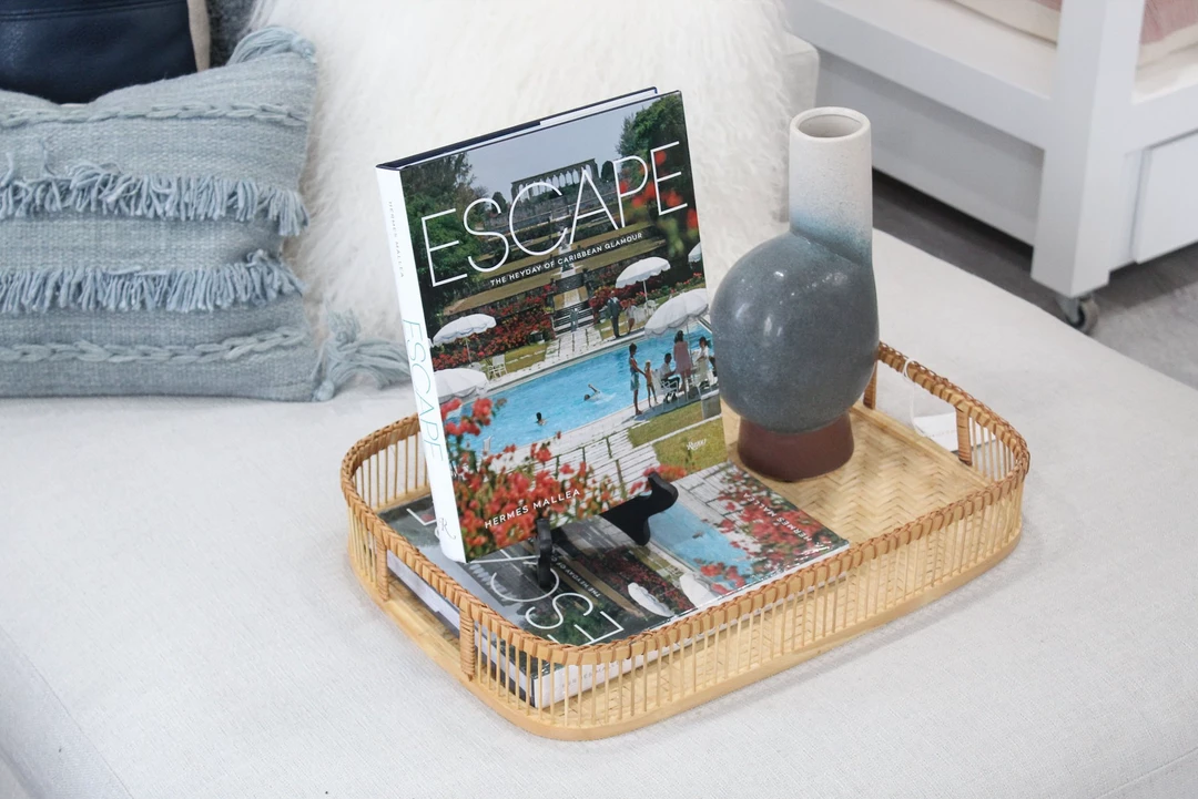 A simple but beautiful tray to help display your favorite books or vase. This coffee table tray is ideal for carrying drinks or snacks to the porch or another room in the house. It also helps with a picnic to carry multiple items outside at the same time.