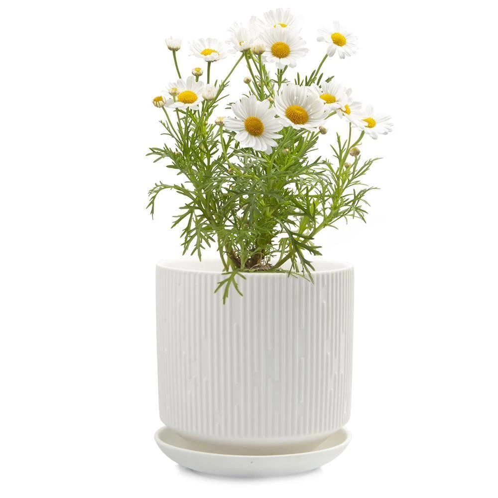A classic white pot with a touch of sophistication.