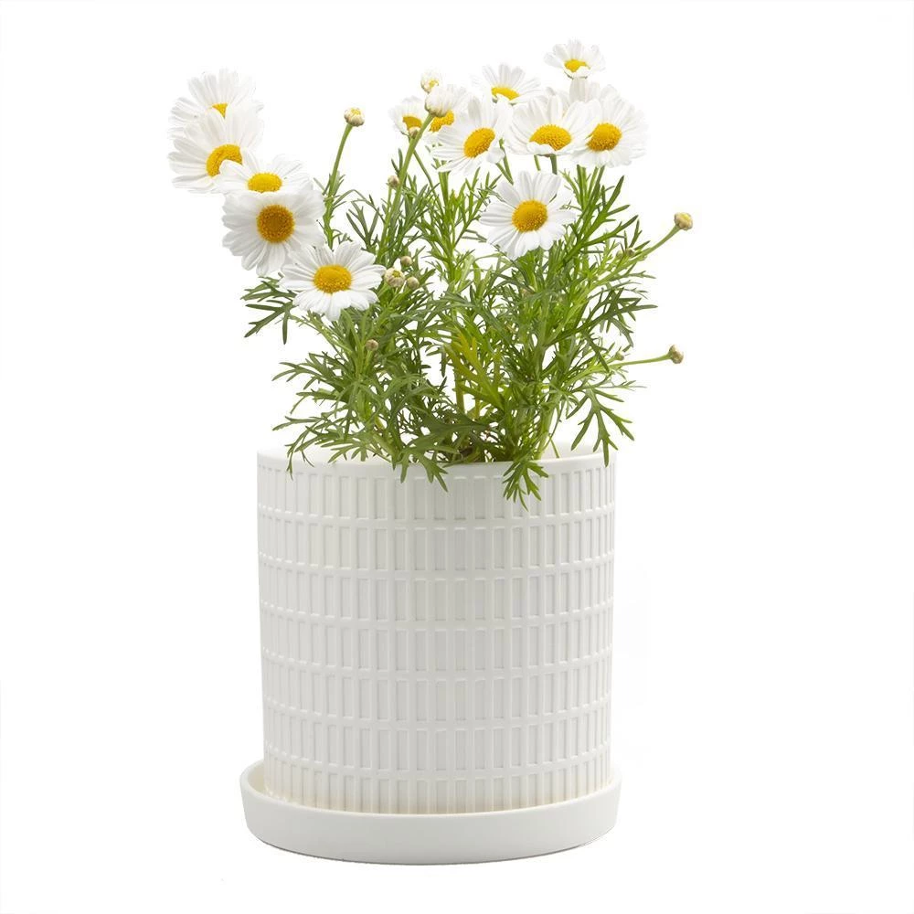 A classic white pot with a touch of sophistication. The perfect pots for housing everything to from basil to ferns in style. With its detachable saucer and ever important drainage hole you’ll never have to worry about over watering.Â