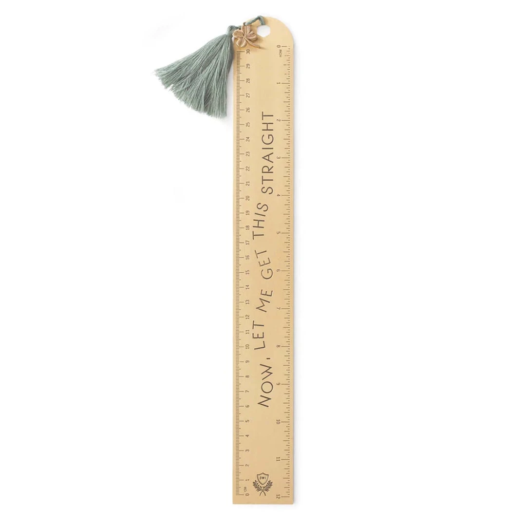 Finally a ruler that will measure up to your standards! And is cute to boot! Made of heavy duty copper with an elegant gold finish, this office essential is as functional as it is pretty. Adorned with a gold charm, a dusty sage tassel, and a that sentiment reads: “Now, let me get this straight”.