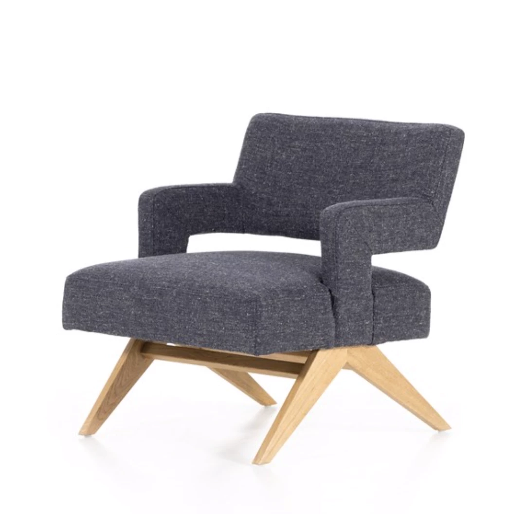 Light, honey-finished solid oak forms an angular A-frame for structured seating upholstered in heavily textured high-performance fabric. The structure of Darlene will have everyone wanting to sit in it.