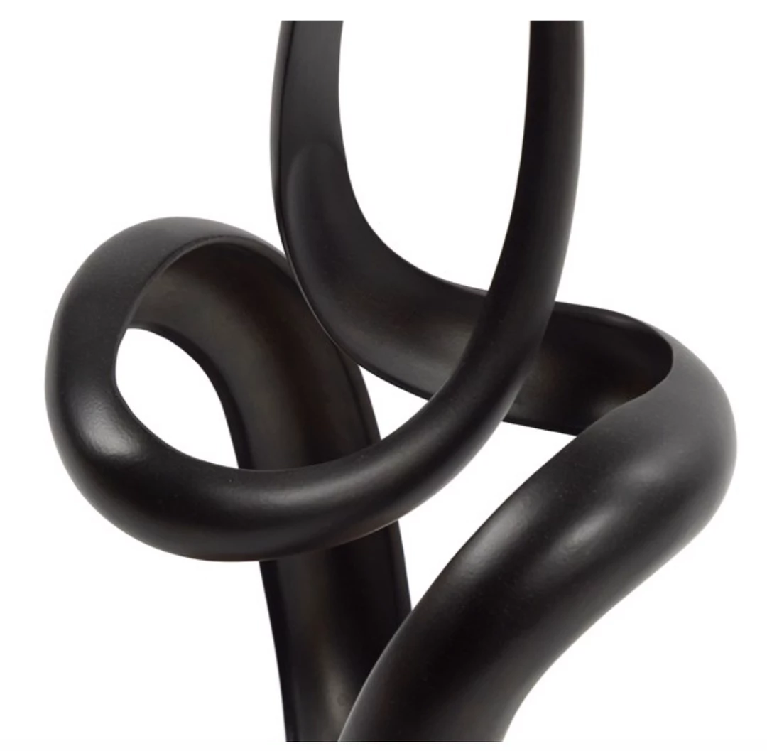 This sculptural art piece features graceful curves forged from bronze-finished iron set on a solid mango base. Throw a new light on minimalist style.