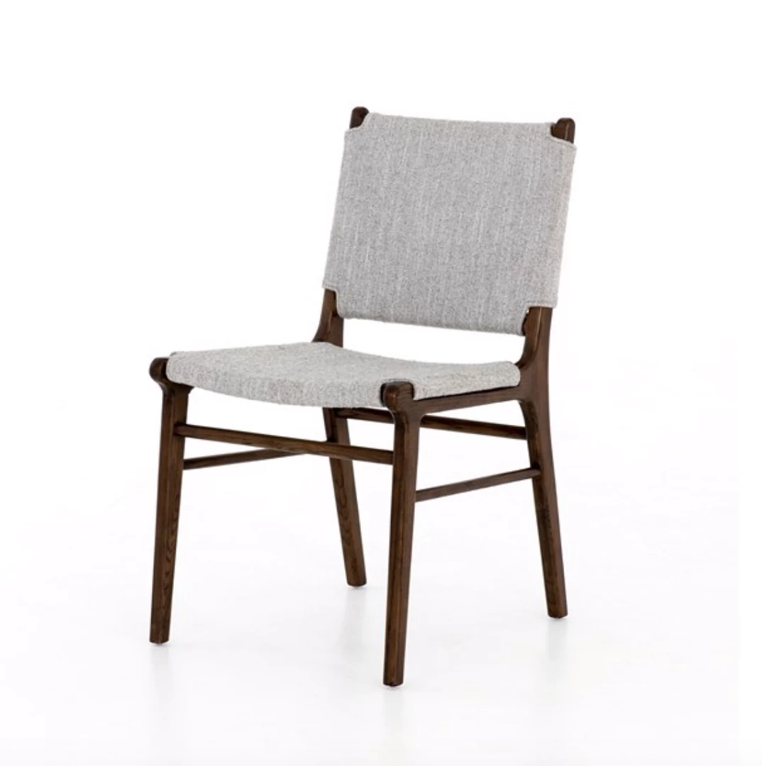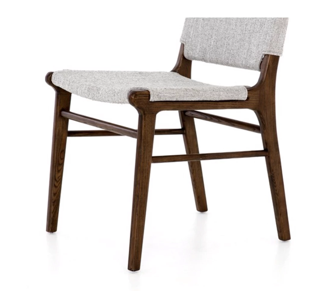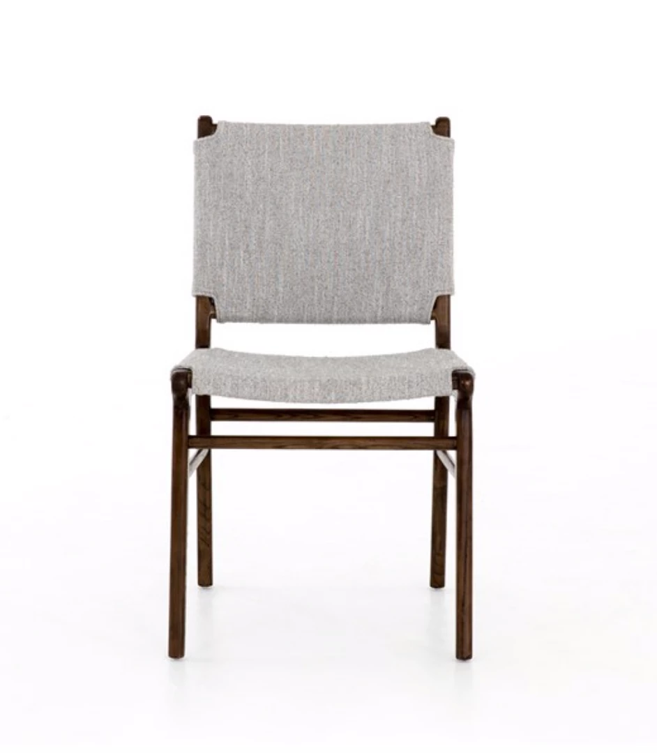 Stylishly simple. Almond-finished birch brings a sense of structure to cotton-blend seating in a pleasingly neutral grey. Inset back adds a tailored finishing touch. Pair these chairs with one of our mid-century dining room tables.