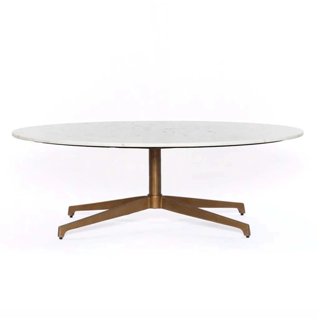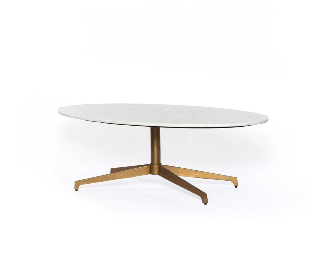 This simple yet sophisticated oval shaped coffee table is petite in scale and perfect for smaller spaces or rooms with a sectional. Add a fun and fashion-forward pop of metal to the mix. Glam to eclectic, geometric to soft, these smart accent pieces are made from cast aluminum and forged iron, stone, marble and mirror. Mix and match vintage-inspired occasional tables and bar carts for flirty, flexible functionality thatโs geared for great entertaining.