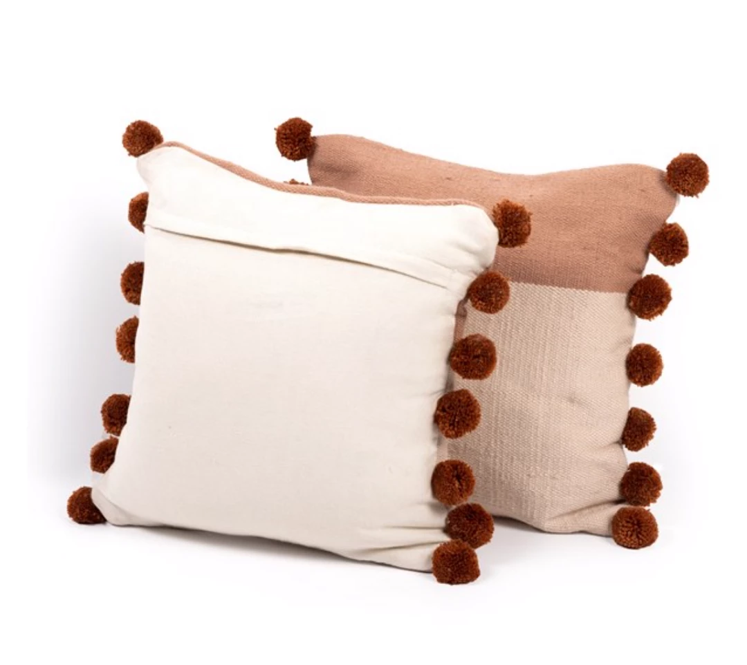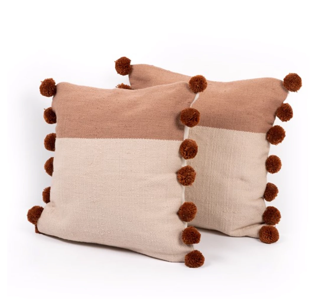 Toss in some texture, indoors or out. A monochromatic pattern with matching side tassels tops this set of eco-friendly outdoor throw pillows made entirely from recycled plastics. Store inside during inclement weather.