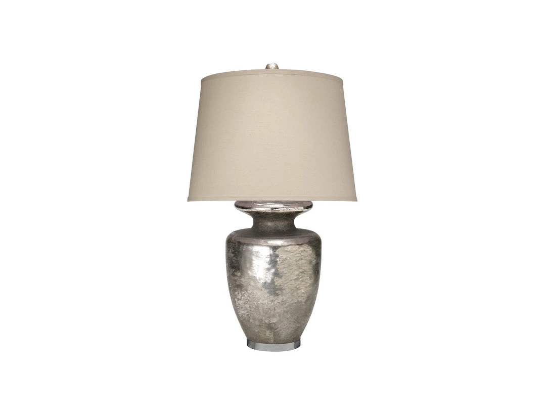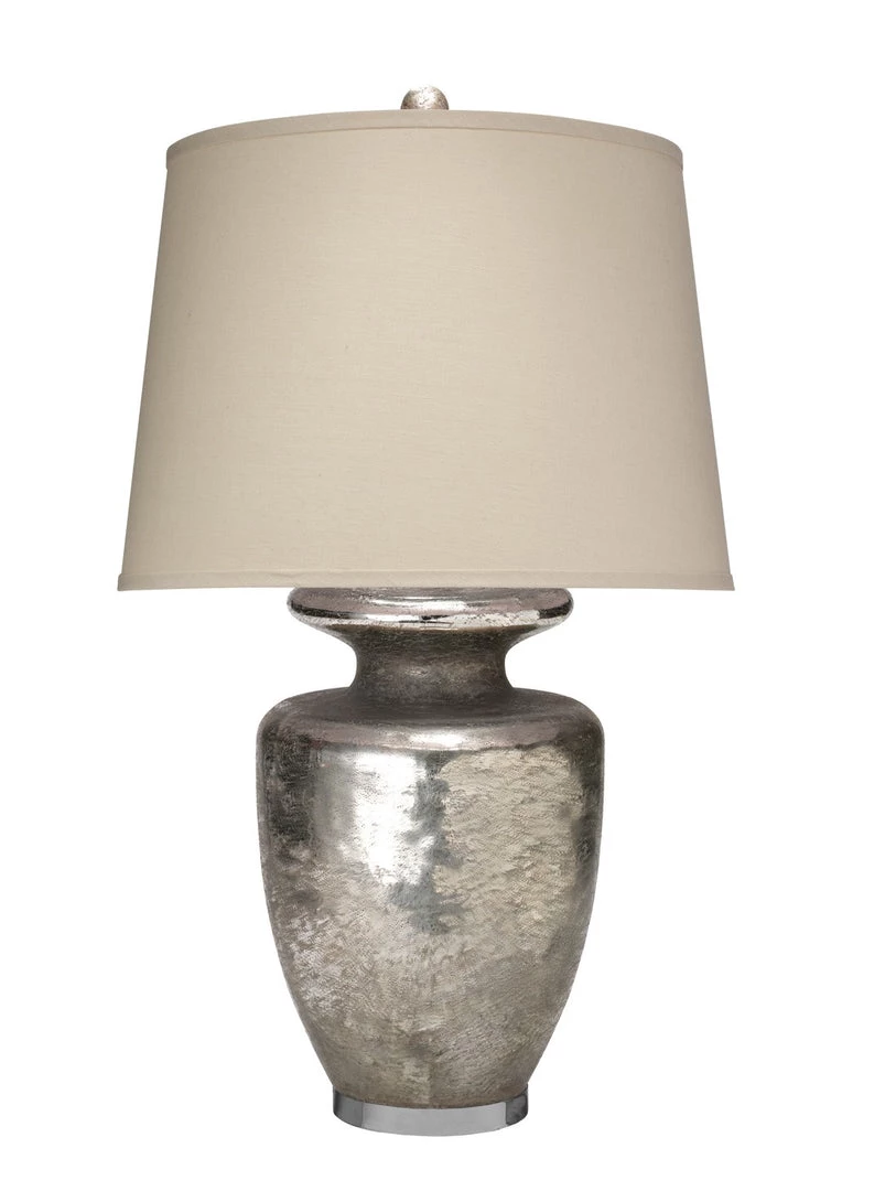 Cool and contemporary, this textured mercury glass table lamp will make a statement on an end or side table. The classic finish creates unique and lovely dimension. The design features an urn silhouette furthering this classy look. The lamp is topped with a simple stone linen cone shade.