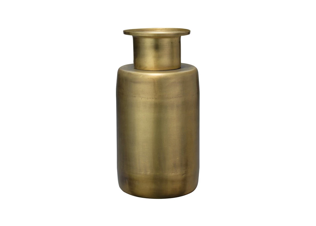 This modern antique brass vase is perfect for displaying your favorite flowers. Antique-inspired modern silhouette. A strong graphic form makes a statement as modern antiquity.