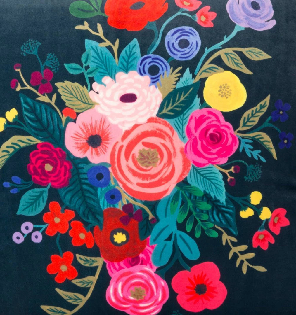 A bright bouquet of flowers against a dramatic midnight velvet background make these accent pillows throw a dramatic essence into your space. Timeless and elegant these cushions will draw just the right amount of class to your accent decor.Â