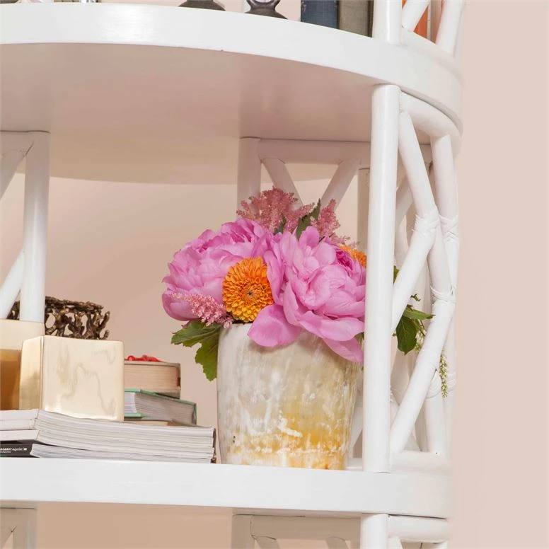 Made of water buffalo horn, the Reese vase has an other- worldly feel, with colors ranging from caramel and brown to honey and white. Each piece is one of a kind.