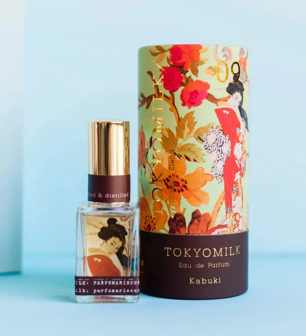 A decadently different collection of brilliantly paired fragrance notes housed in an alluring glass bottle decorated with an iconic image of Japanese theater.