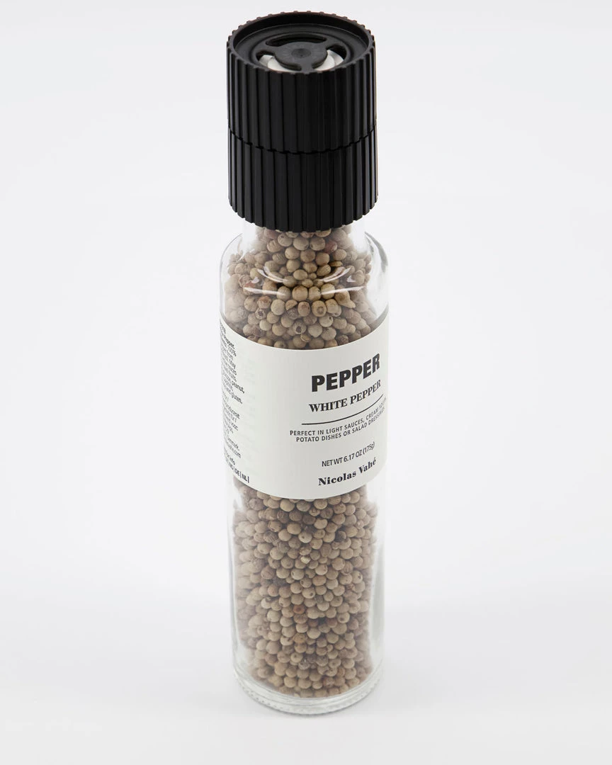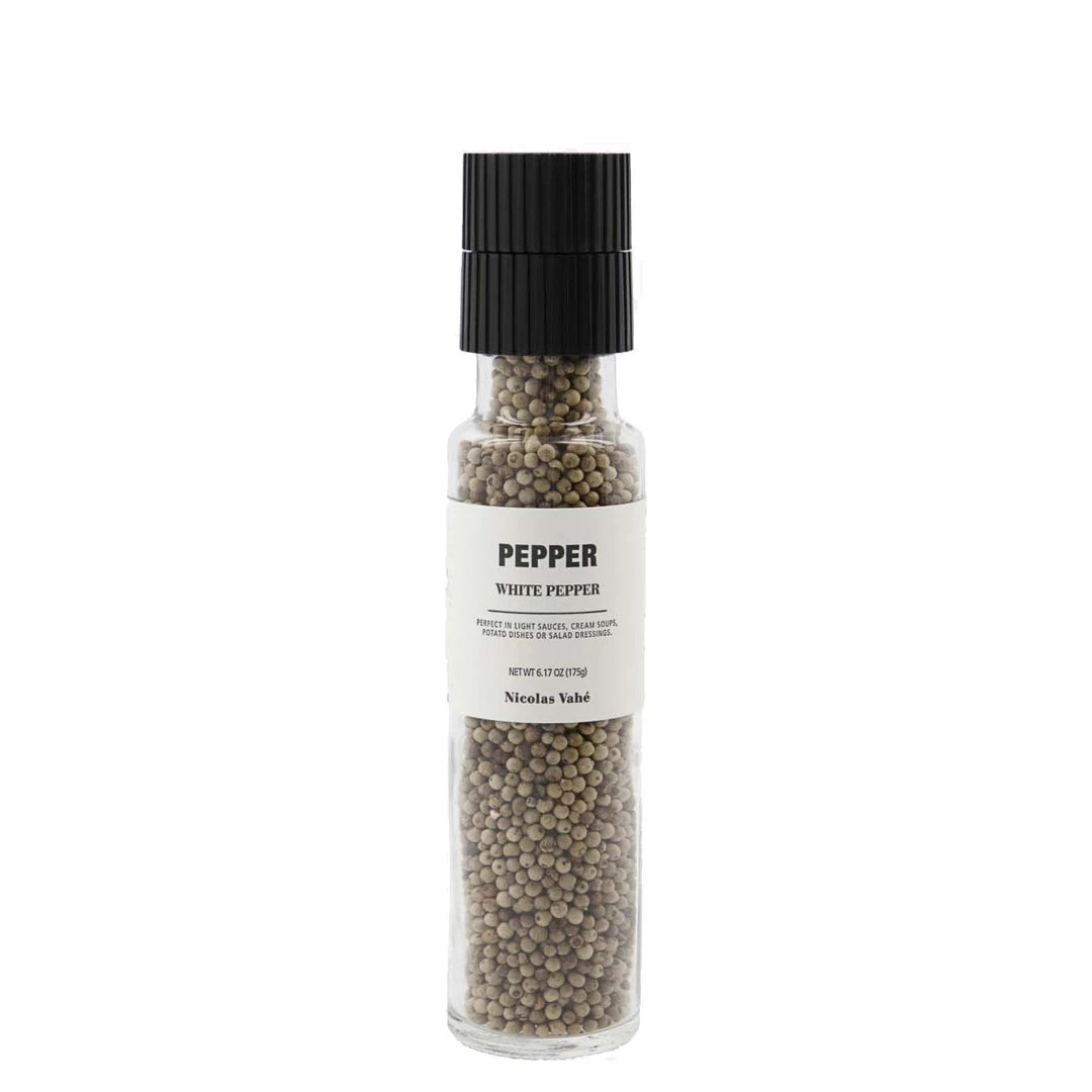 Enjoy the delicious and delicate white pepper from Nicolas Vahé with a strong, distinctive flavour and a light aroma. Make the most delicious sauces with white pepper or use it in soups, potato dishes and salad dressings to add extra flavour. The fine and bright peppercorns come in a decorative grinder.
