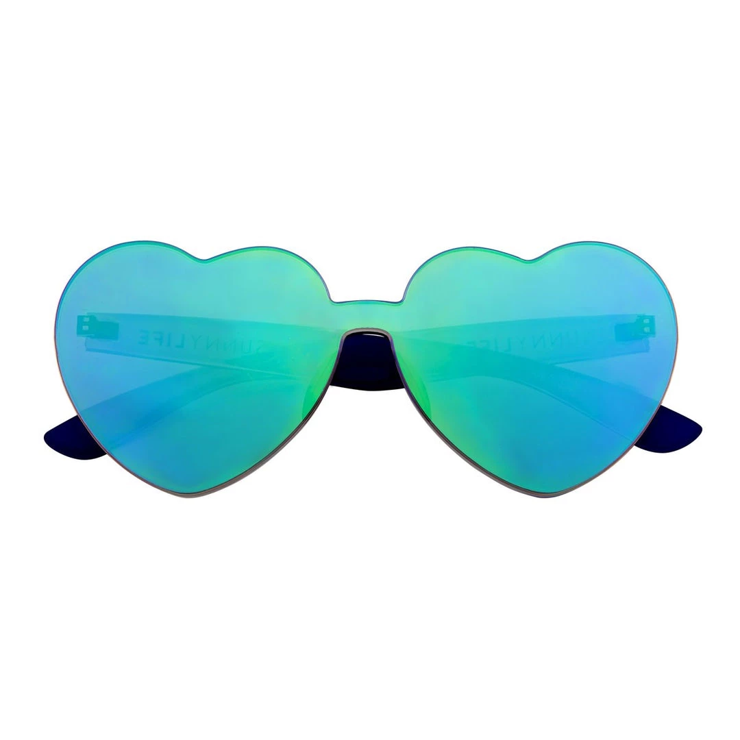 Summer is looking bright with these fun midnight iridescent heart sunnies.