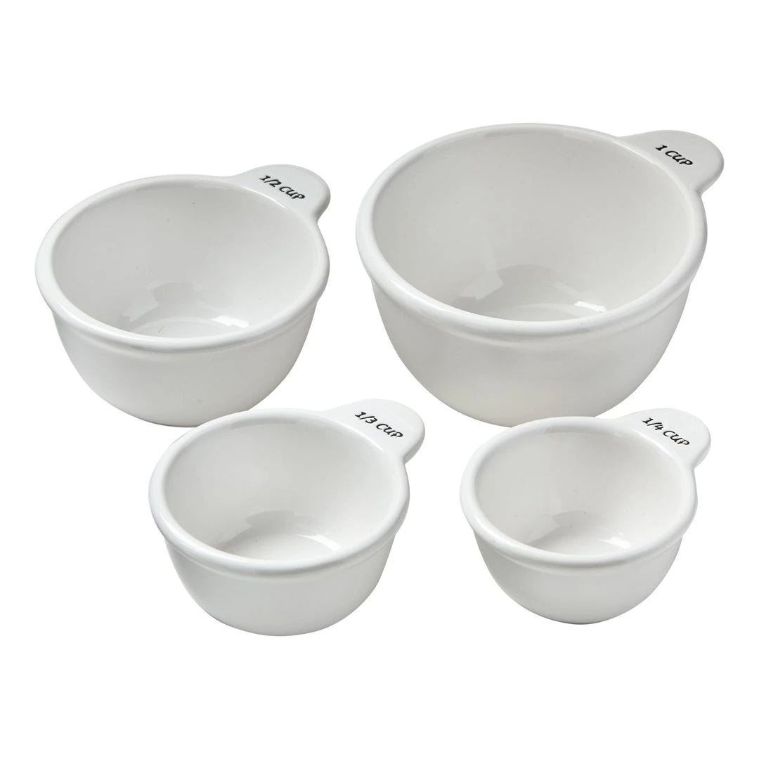 Make cooking and baking a breeze with these beautiful stoneware and black wax resist measurement cups. These cups will match perfectly with our white measuring spoon set.