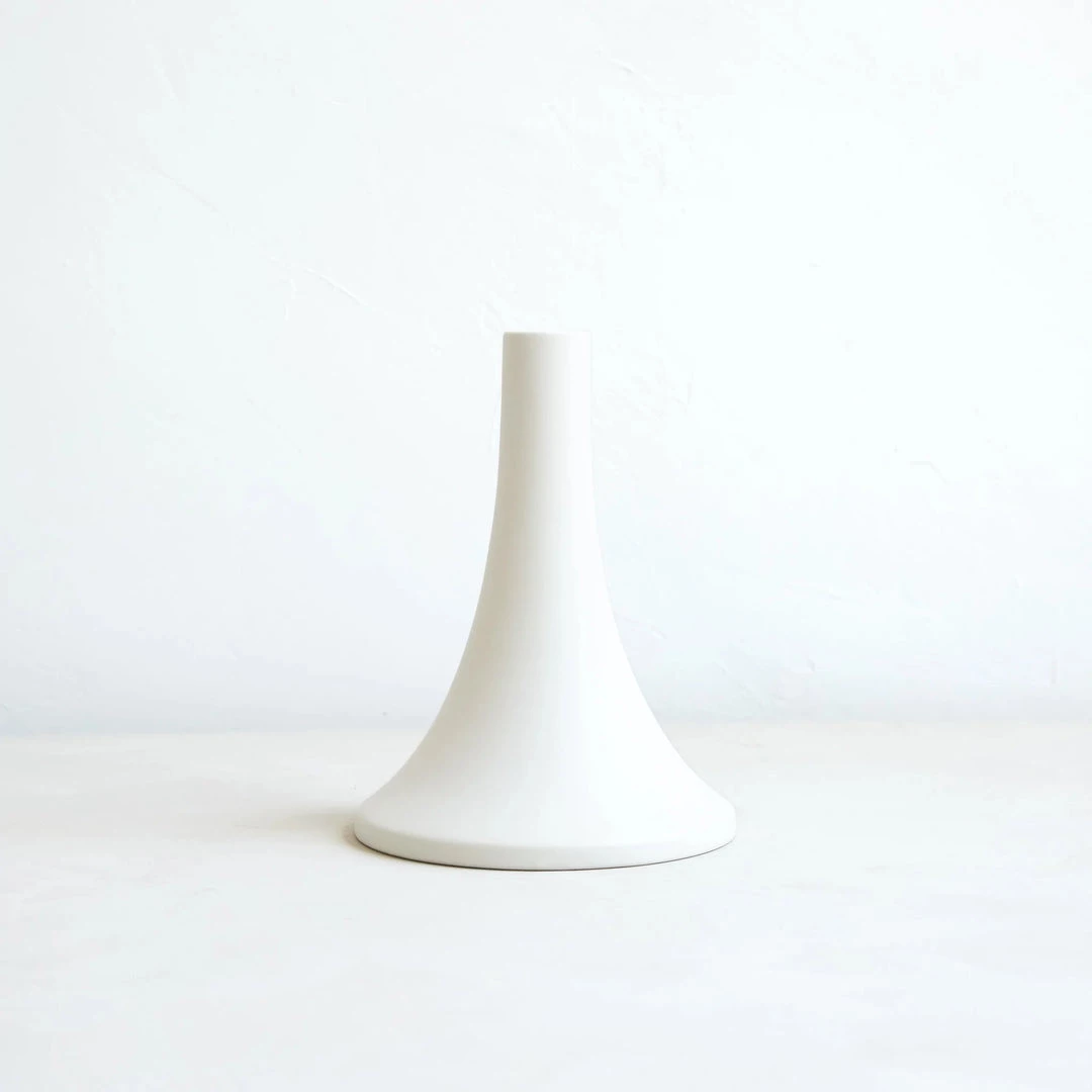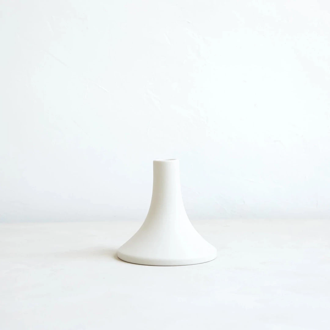Ceramic grand taper holders offer a fresh variation in shape and size and boast a clean, matte finish. With stand-alone appeal, they also feel dynamic as a collection. Each holder is sized to fit a standard taper candle.
