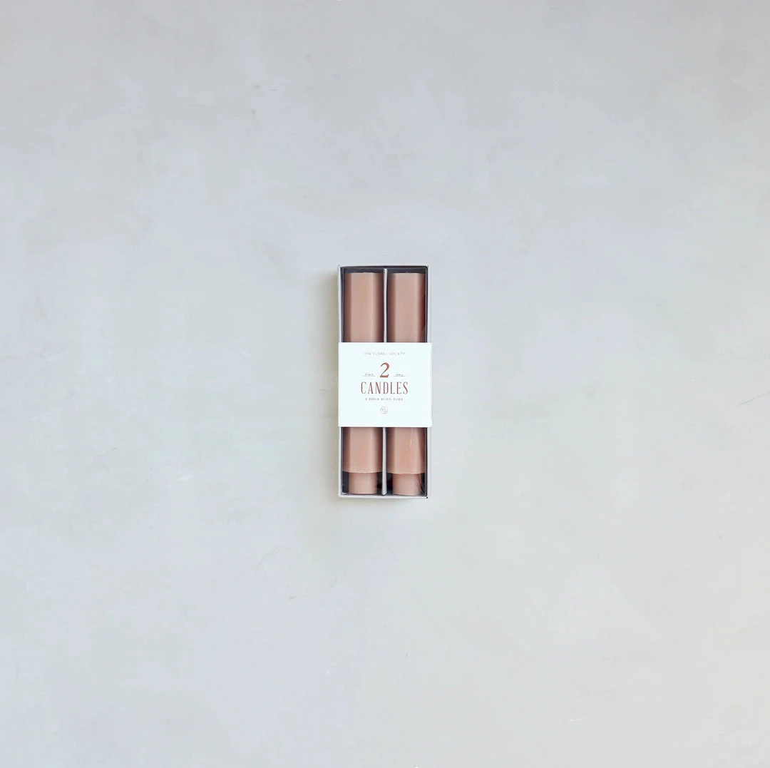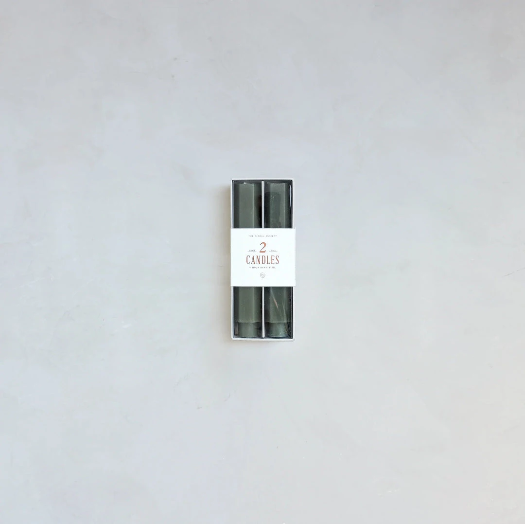 Fancy Taper Candles are hand-molded and embody a superior depth of color. A cotton wick is used for the cleanest burn, and the base is sized to fit a standard holder.