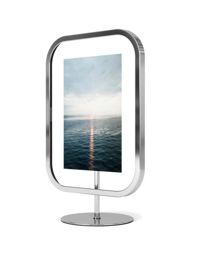 Infinity is an eye-catching picture frame that floats your photo between two panes of glass while adding a new dimension to your space with its rectangular shape. This innovative rectangular picture frame elevates photos creating a unique and modern display Infinity can either be wall mounted or placed on a tabletop using its attachable pedestal stand.