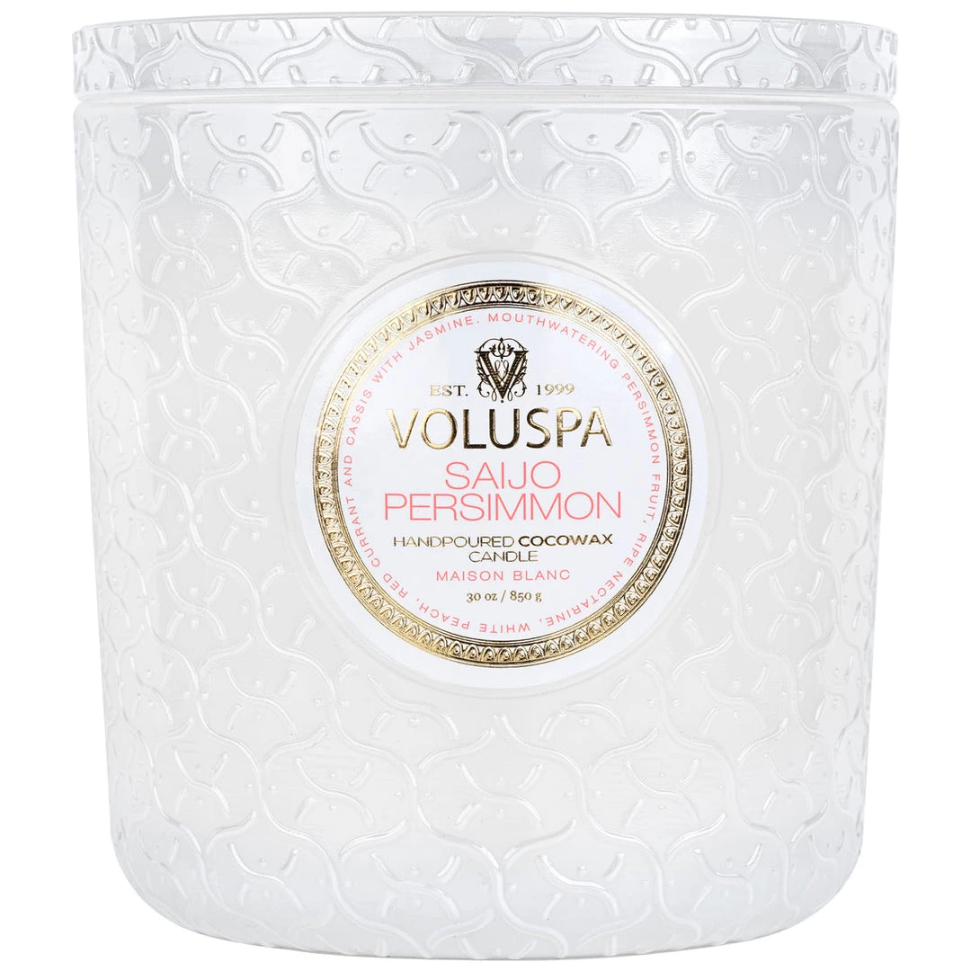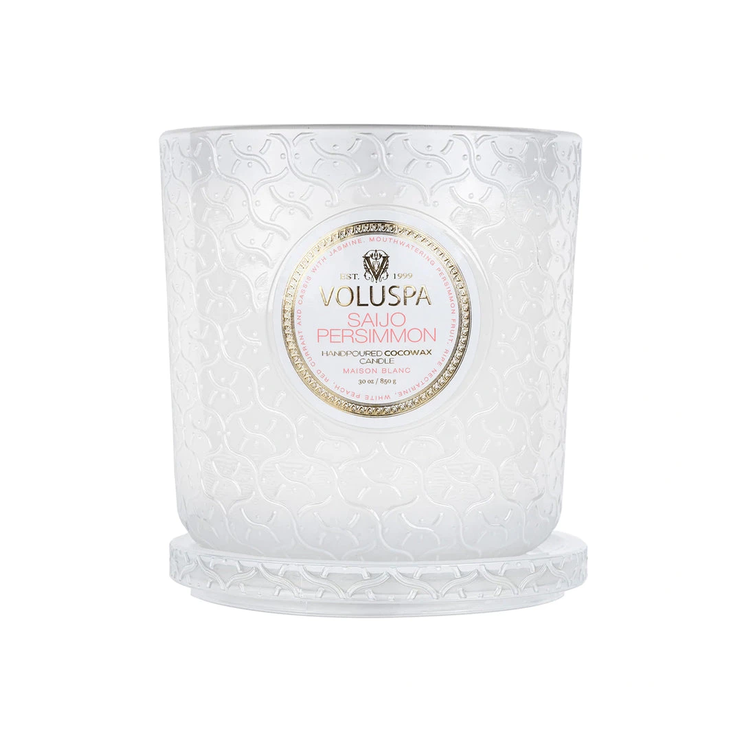There is no shortage of luxury in our Maison Luxe Jar Candle. Voluspa’s signature Maison pattern wraps the vessel in an elegant emboss from base to lid. The triple wick configuration transforms the ambience with its reflective glow, creating a generous wax pool to ensure abundant fragrance throw. As a finishing touch, the candle is perfectly designed to fit in the depression of the lid when lit.