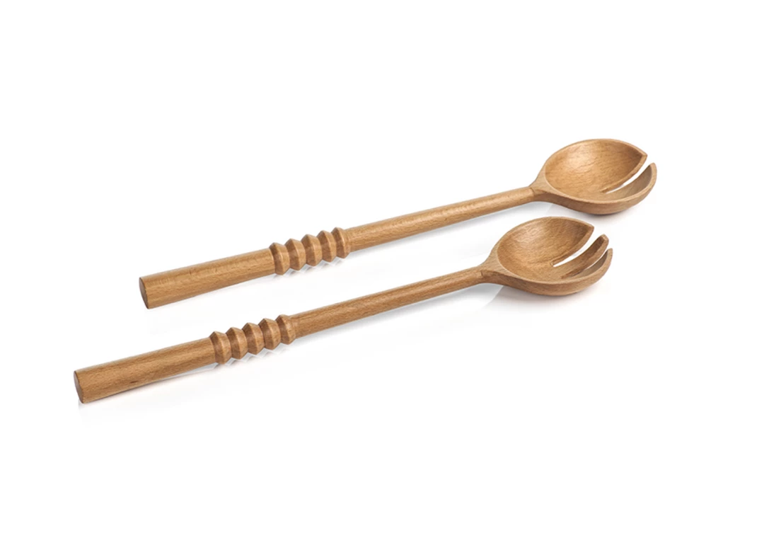 Serve appetizing salads in style with this wood salad serving set. A fun feature designed with a textured handle for firm grip, these wood salad servers are perfect for tossing and serving your favorite salads, while the natural brown finish complements any dining setting. Perfect for serving your culinary creations in style!